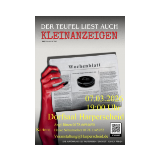 Im März haben wir Theater für Euch im Programm. Zusätzlich zum nicht regelmäßig geplanten Kabarett (Weibsbilder, Eifel-Gäng u.a.) gibt es einen Auftritt des Theatervereins Einigkeit Rinnen 1920 e.V.
